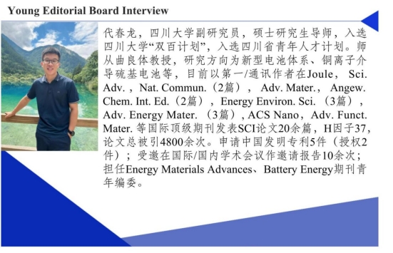 5.Battery Energy:您担任《Battery Energy》青年编委,并参与了期刊的学术工作。您对期刊未来的发展有何期许或建议?