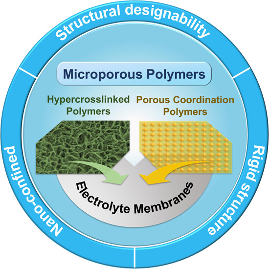 可充电锂金属电池(LMBs)在提供高能量密度方面前景广阔。然而,其广泛商业化应用一直受到关键挑战的制约,例如电解质/电极界面不可逆过程导致的容量衰减,以及由锂沉积不均匀引发的安全隐患。聚合物电解质凭借其增强的电解质/电极接触性能和低界面阻抗,为应对这些挑战提供了灵活的解决方案,并有望实现高能量密度且柔性的电池系统。尽管前景广阔,但低效且笨重的离子导电性以及较差的机械稳定性,阻碍了聚合物电解质在实际电池中的稳定运行,这迫切需要开发创新的聚合物电解质化学体系。在各类聚合物材料中,微孔聚合物因其丰富的孔隙率和可定制的微孔结构而脱颖而出,使其成为下一代电解质膜的极具前景的候选材料。本文综述了基于两种新型化学体系——超交联聚合物(HCPs)和多孔配位聚合物(PCPs)——的电解质膜的最新进展。此外,本文还讨论了其他微孔聚合物,如共价有机聚合物、多孔有机笼和固有微孔聚合物,重点探讨了它们在锂金属电池(LMBs)中的应用。最重要的是,通过回顾设计策略、合成方案及其在锂金属电池中的性能表现,我们深入理解了基于HCPs和PCPs的高性能电解质膜的设计原理,并指出了未来潜在的研究方向。