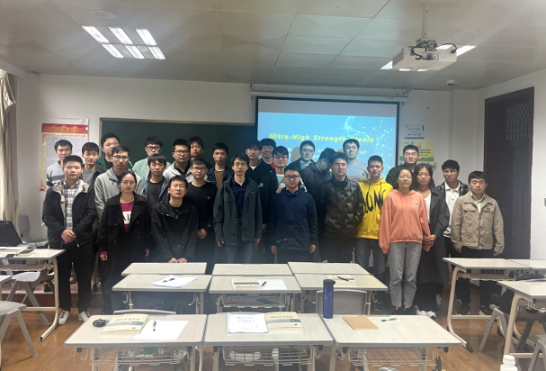 报告首先对国内外钢铁领域的研究现状、钢铁产量、技术等方面进行分析,将科学前沿领域的纳米技术与传统钢铁领域相结合,提出了“超高强钢”研究的新思路。其次,通过对最新研究成果进行梳理,介绍了纳米共析出颗粒对“超高强钢”性能的影响,并提出了“超高强钢”究所面临的机遇与挑战。最后提出“超高强钢”预期发展的三大方向及所面临的问题,引发同学们的积极思考。