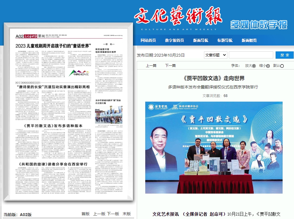 中国周刊 文化艺术报:《贾平凹散文选》多语种版本中国发布座谈会暨翻译授权仪式在西京学院举行