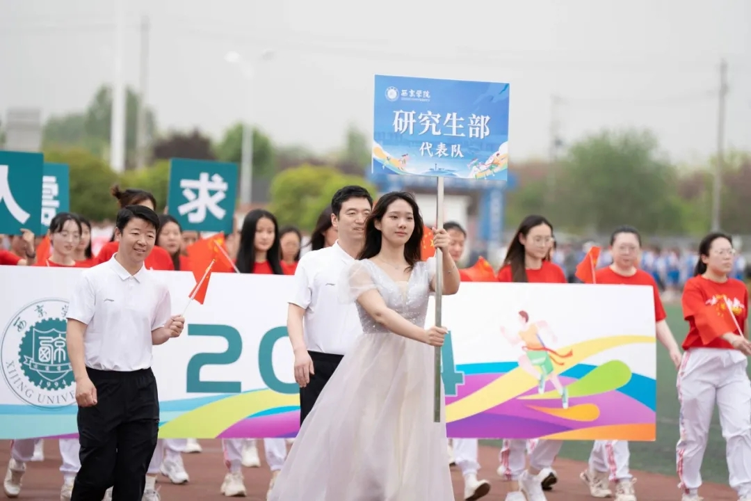 紧接着,花束、彩旗、裁判员、教职工、研究生、万钧书院、至诚书院、行健书院、创业书院、允能书院、博雅书院、退役大学生、团学、社团等方阵依次入场。他们或手持彩旗挥舞,或捧着花束绽放,整齐划一、铿锵矫健,以饱满的热情和昂扬的斗志展现了西京学子的青春风采,诠释了新时代大学生的自信与力量。