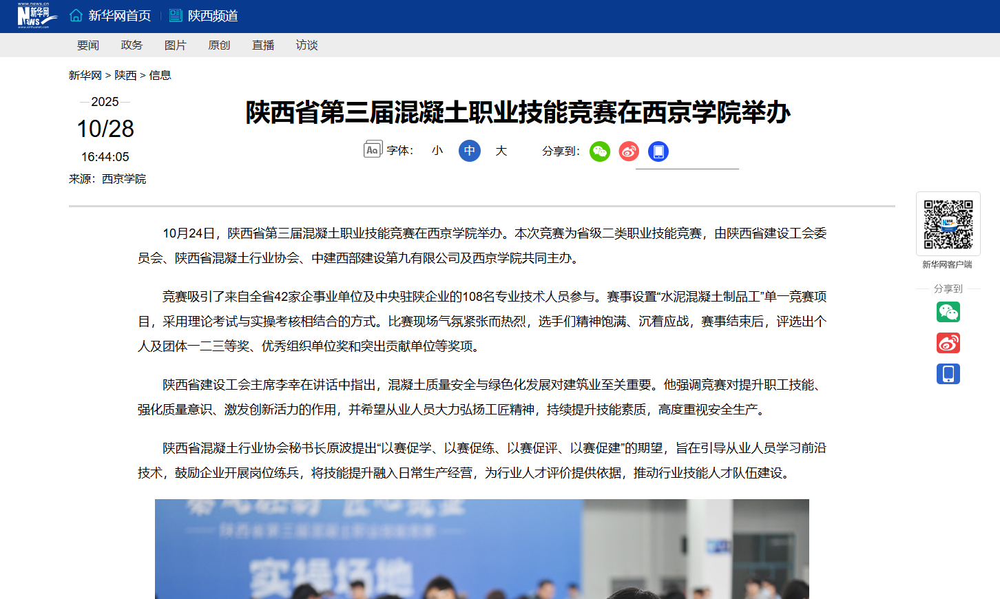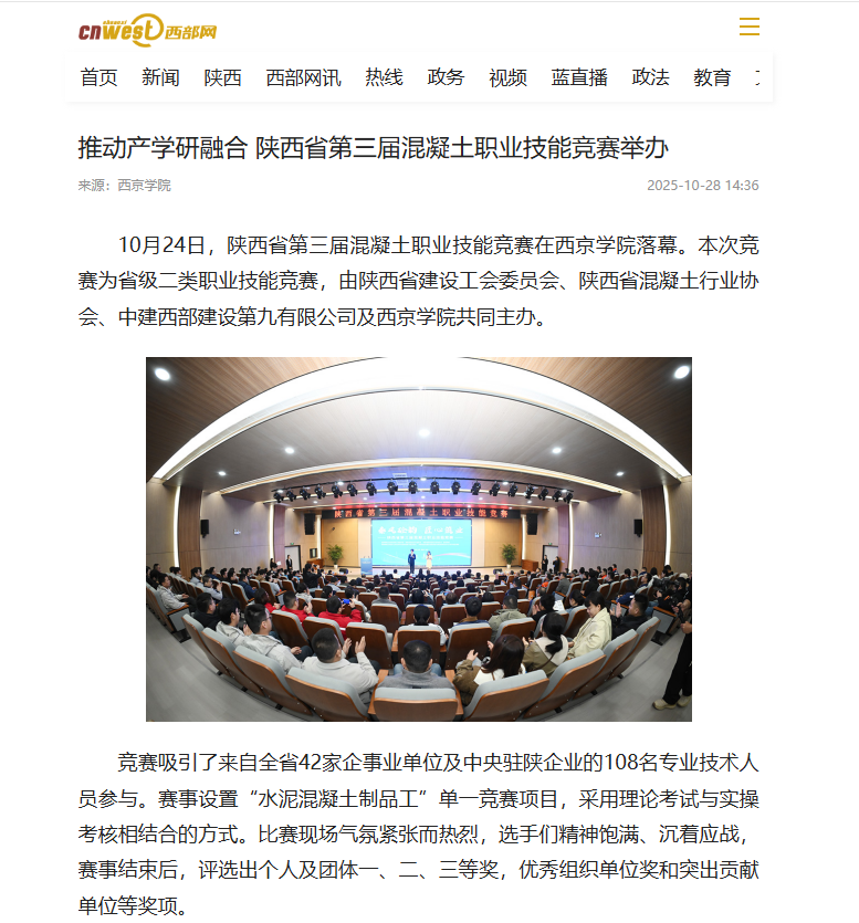 推动产学研融合:陕西省第三届混凝土职业技能竞赛在西京学院举办
