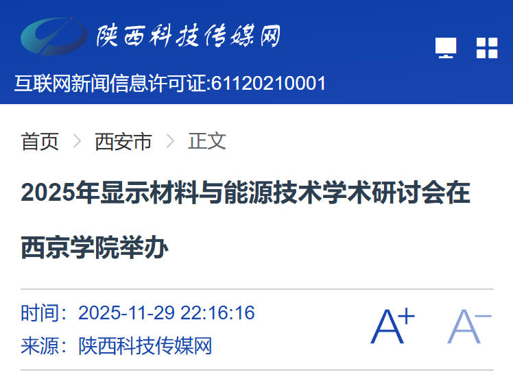 11月29日,2025年显示材料与能源技术学术研讨会在西京学院举办。来自西北工业大学、北京航空航天大学、北京科技大学等国内知名高校的50余位专家学者齐聚一堂,围绕显示材料与能源技术的前沿进展展开深入交流与探讨,为该领域的创新合作与产业升级注入强大动力。