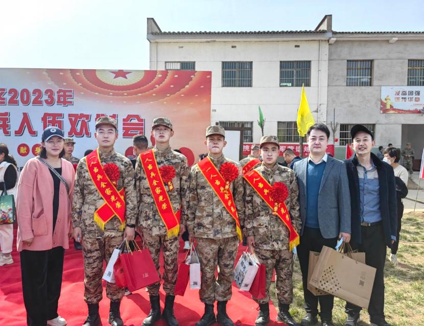 西京网讯:近日,我校征兵站站长马璐,事务科科长于鹏,征兵站工作人员及应征地西京学院学生在陕西天刃国防教育军事训练基地参加了长安区人民武装部举办的2023年长安区春季新兵欢送仪式,新兵们身披戎装,佩戴光荣入伍绶带和大红花,抬头挺胸,意气风发。现场新兵家长与新兵紧紧相拥,依依不舍,这些新兵在家是父母的孩子,穿上军装便是国家的战士。