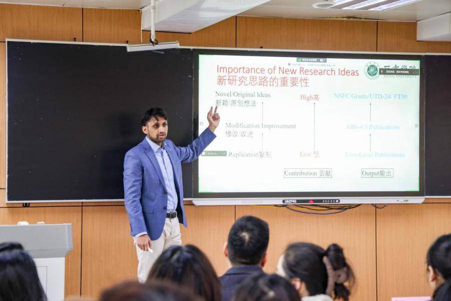 在交流会上,Yasir教授针对他在国际顶刊论文发表过程中的宝贵经验进行了详细阐述。他表示,顶级期刊在学术研究中的重要性不可小觑,并分享了如何探索新的研究思路的一些方法和技巧。他的分享吸引了在场学者的关注,大家认真做笔记,探讨如何将这些经验应用于自己的研究中。