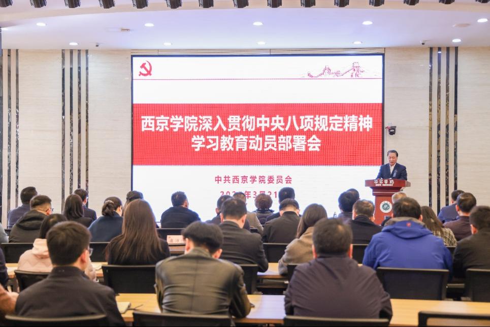 3月21日,西京学院召开深入贯彻中央八项规定精神学习教育动员部署会,党委书记李邦邦作动员讲话。