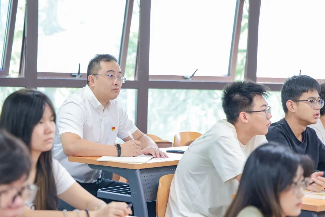 校领导王正斌、马成胜、黄文准、郭建新、刘鹏、程永清、谢明也分别走进教室,仔细聆听不同专业、不同课程的授课内容,认真记录课堂亮点与可提升之处,课后还与授课教师进行了深入且细致的探讨,针对教学环节设计、课程重难点把握等方面给出了建议和指导,鼓励教师们在新学期不断创新教学方式,同时,紧密结合现实案例和社会热点,增强课程的时代感和针对性,帮助学生更好地理解习近平新时代中国特色社会主义思想的理论与实践价值,为学生们带来更优质、更高效的课堂。