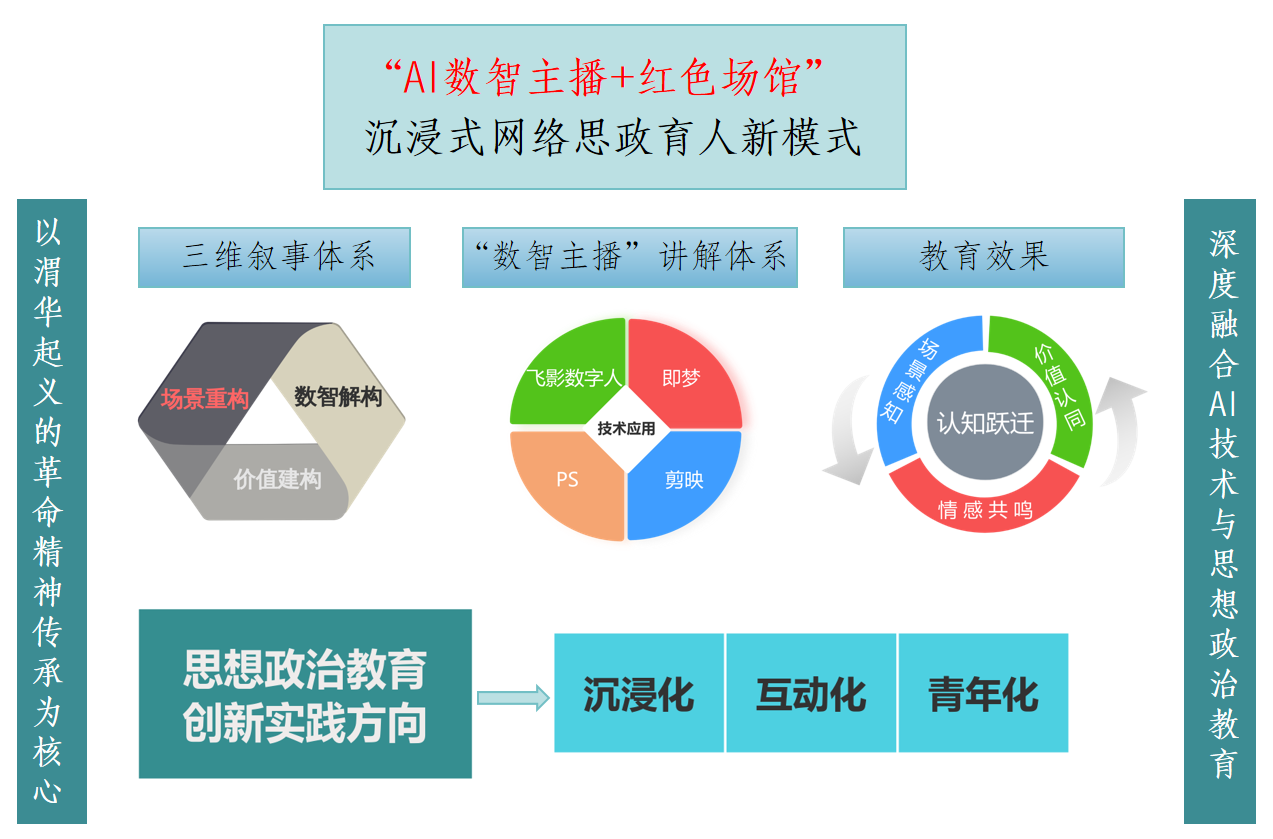 开辟协同育人新场域,实现课堂教学、实践教学、网络教学的有机贯通。特别在价值观塑造方面,实证显示技术赋能可增强青年对红色文化的时代认同,同时为辅导员工作提供可迁移的实践模板。