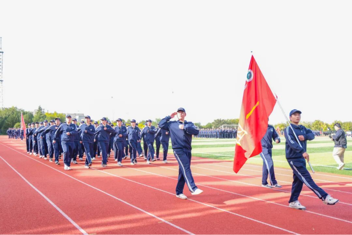 分列式方阵汇报中,由2025级新生组成的多个方阵,依次迈着整齐的步伐走过观礼台,脚步声铿锵如鼓,口号声震彻云霄,同学们身姿挺拔、目光坚毅,展现出新时代青年的蓬勃朝气。