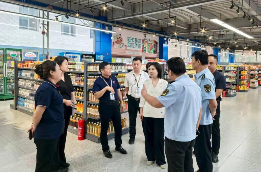 随后,周晓健一行来到校园超市,了解我校流通食品的安全管理情况。