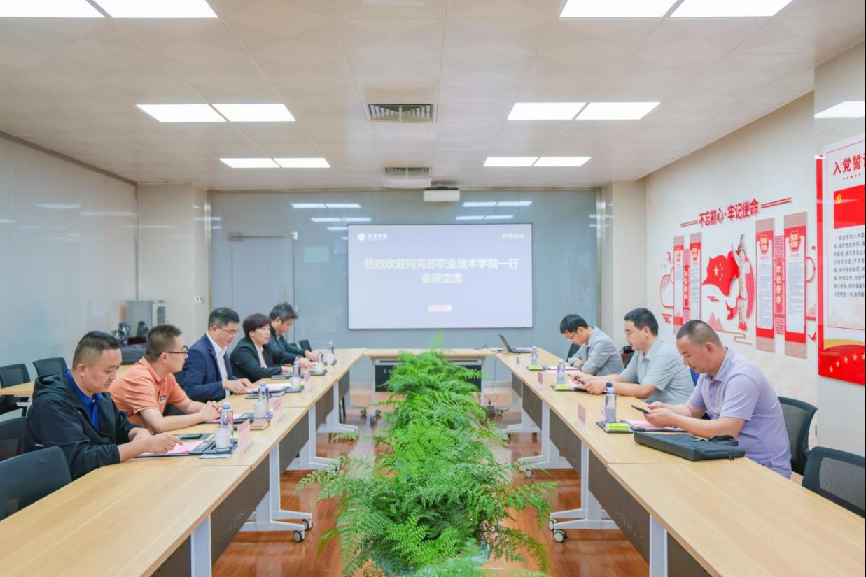随后,双方在第四会议室座谈交流。会议由我校校长助理刘鹏主持,他代表学校对吴杰一行的到来表示热烈欢迎,并详细介绍了我校的发展历程、办学特色及取得的显著成就。吴杰对我校的热情接待表示感谢,并介绍了阿克苏职业技术学院的办学情况及未来合作意向。