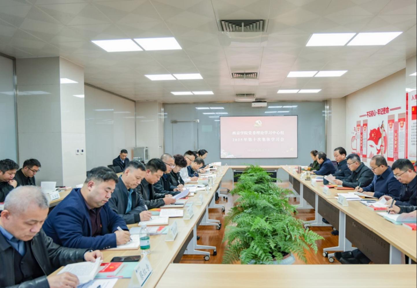 西京网讯:11月7日上午,学校党委理论学习中心组在第四会议室以“学习贯彻四中全会精神,为教育强国、教育强省贡献力量”为主题举行2025年第十次集体学习会。党委书记李邦邦主持学习会并讲话。