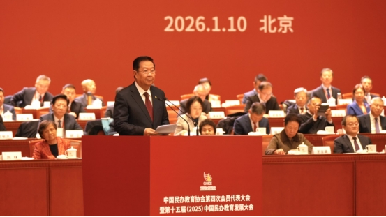 1月10日,中国民办教育协会第四次会员代表大会暨第十五届(2025)中国民办教育发展大会在北京召开。民进中央主席蔡达峰,第十三届全国政协副主席、国家教育咨询委员会委员辜胜阻,教育部原党组书记、部长袁贵仁,全国政协常委、教科卫体委员会副主任、中国科协原党组书记尚勇,全国人大常委、全国人大教科文卫委员会副主任古小玉,全国政协常委、副秘书长、民革中央副主席兼秘书长李惠东,教育部党组成员、副部长杜江峰,全国人大常委会原副秘书长、法律委员会原副主任李连宁,中国教育发展基金会理事长、中纪委驻教育部纪检组原组长王立英,中国教育国际交流协会会长、教育部原副部长刘利民,中国高等教育学会会长、教育部原副部长林蕙青,中国教育学会顾问、教育部原副部长郑富芝,教育部高校教育教学评价专家委员会副主任、中国高等教育学会第六届理事会会长瞿振元,全国性行业协会商会第十四联合党委书记、中国人民大学原党委书记靳诺,原国家汉办主任、孔子学院总部原总干事许琳,中国教育发展战略学会会长、武汉大学原党委书记韩进,全国人大教科文卫委员会教育室主任方光伟,民进中央秘书长金永伟,教育部发展规划司司长郭鹏,教育部校外教育培训监管司司长范海林,教育部基础教育司二级巡视员张权,中国教育学会秘书长杨银付,教育部学生体育协会联合秘书处秘书长、中国学生体育联合会副主席陈东升,以及中央社会工作部、教育部有关司局工作部门负责同志出席大会开幕式。
