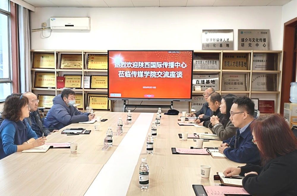 与此同时,传媒学院还与陕西国际传播中心举行交流座谈会,围绕国际传播人才培养、课程共建、实习基地建设等方面展开深入探讨。双方一致表示,将在区域国别研究、数字化传播手段应用等领域加强合作,共同探索校媒协同育人新机制。