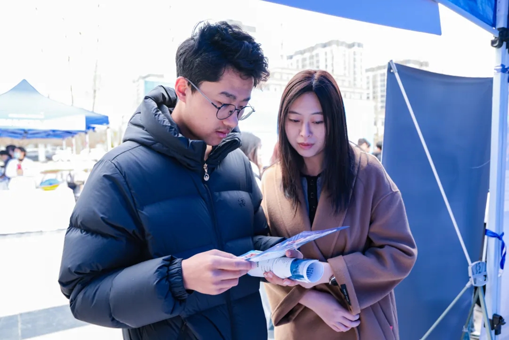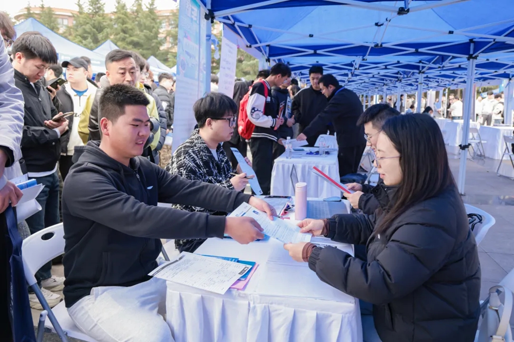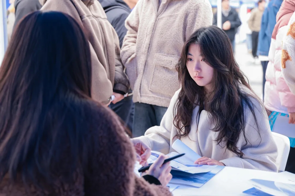 ——按需设区,好岗云集。招聘会现场根据产业需求特点,精心设置了两个特色招聘专区,实现人才供给与产业需求的精准匹配。其中,“智创未来・硬科技与先进制造招聘专区”集聚110家单位,涵盖集成电路、高端制造、信息技术等技术密集型领域,面向技术型、研发型人才释放大量岗位。“慧聚英才・现代服务与教育文化招聘专区”则集结127家单位,覆盖人力资本、知识服务、文化创意等人才密集型领域,满足复合型、服务型人才的求职需求。此次招聘会线上线下同步进行,参会企业887家(其中线下参会237家),提供招聘岗位11200余个。参会学生5177人,累计投递简历7605份,初步达成就业意向1275人。