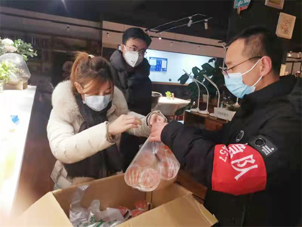 教职工、学生、退役军人组成的志愿者主动请缨、不分昼夜,牺牲休息时间,在后厨帮灶、给同学们送餐、核酸检测、购物、校内巡查、数据统计等,保障外围生活物资的配送和楼内垃圾清运工作,最大限度减少人员流动,保障师生生命健康安全。