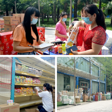 ——校园超市抓紧备货。8月13日上午8点多,校园超市门口已经忙碌起来。负责收货验货的刘淼与送货人员沟通中商品的数量和批号。刘淼说像这样的场景要持续一个星期,按照楼层和位置的不同,会提前一天通知供货商送货的时间。既减少了人员流动,又提高了的工作效率。