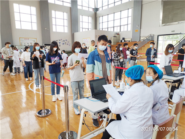 据悉,我校首期疫苗接种工作持续两天。截止5月7日下午5时许,我校师生当日预约了5778剂,已接种3562剂。
