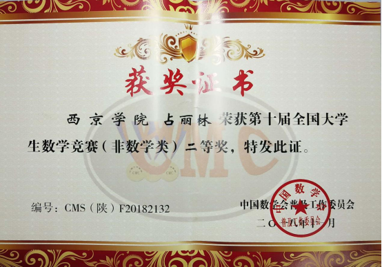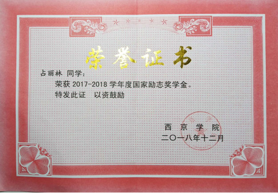 在校期间荣获2017-2018学年度国家励志奖学金;2018-2019学年度国家励志奖学金; 第九届全国大学生数学竞赛(非数学类)三等奖;第十届全国大学生数学竞赛(非数学类)二等奖;第十届蓝桥杯全国软件和信息技术专业人才大赛陕西赛区单片机与开发大学组二等奖; 第四届全国应用型人才综合技能大赛,“匠心•职场秀”简历精英挑战赛三等奖; 2019年全国大学生电子设计竞赛陕西赛区本科组贰等奖; 第五届“建行杯”中国“互联网+”大学生创新创业大赛陕西赛区复赛中荣获银奖;