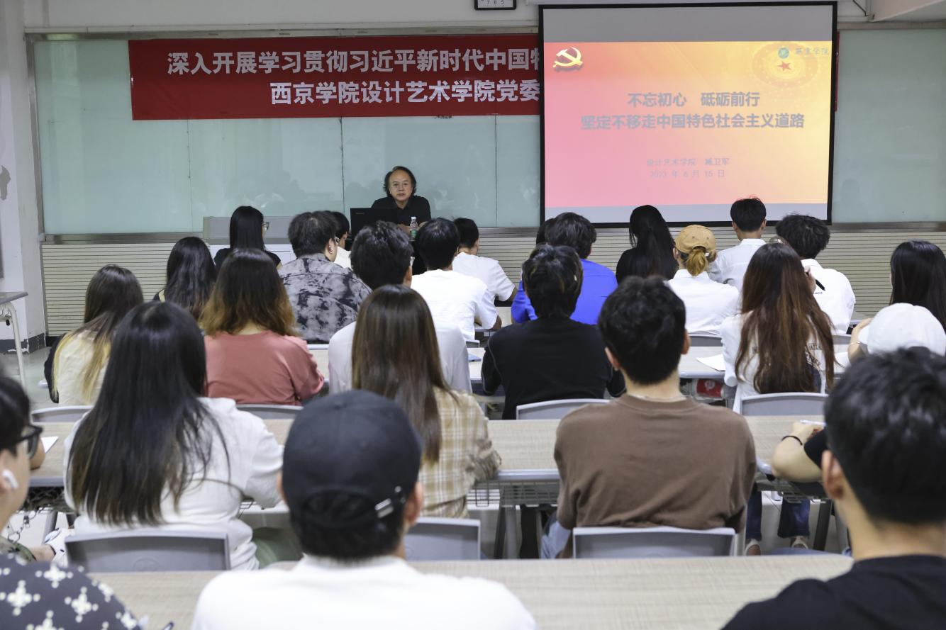 在深入开展学习贯彻习近平新时代中国特色社会主义思想主题教育之际,西京学院设计艺术学院党委书记臧卫军深入一线讲党课、抓调研,推动主题教育走深走实。6月15日下午,学院党委书记臧卫军同志为入党积极分子和学生党员作“不忘初心,砥砺前行,坚定不移走中国特色社会主义道路”专题党课。