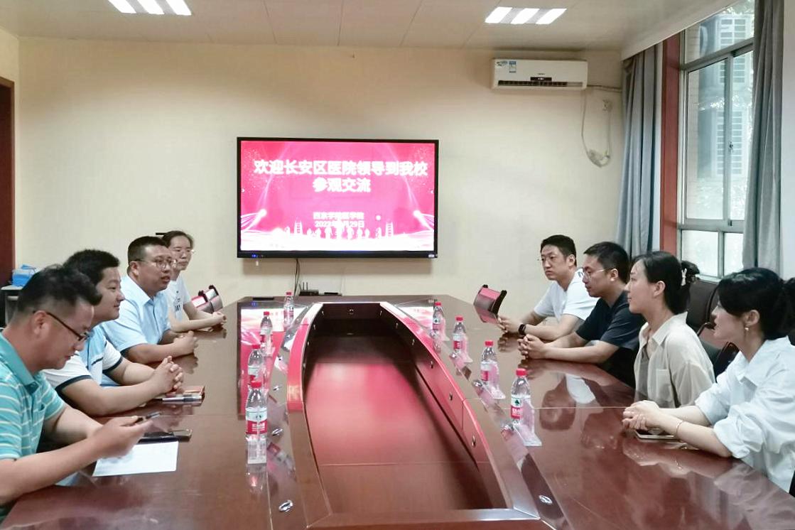 刘学通代表医学院对西安市长安区医院的来访表示热烈欢迎,对医院近年来对我院护理学和医学影像技术两个专业学生实习就业工作的大力支持表示衷心感谢,并详细介绍了医学院的发展历程、专业建设、人才培养等方面的工作,对双方在人才共育、学生实习就业后期的拓展、专业精细化发展等方面做了研讨交流。