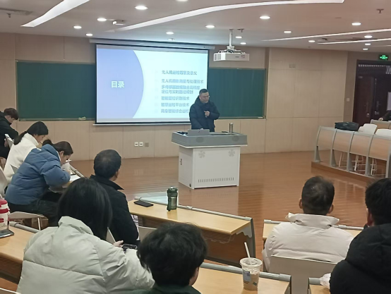 2025年12月5日下午,由人工智能教研室举办的“具身智能无人机巡控系统”学术报告在图书馆201报告厅进行,报告由天津科技大学人工智能学院学术带头人张传雷教授主讲,新一代电子技术25级硕士研究生和人工智能24级本科生、部分教师代表参加了报告会,报告由人工智能教研室主任王旭启主持。