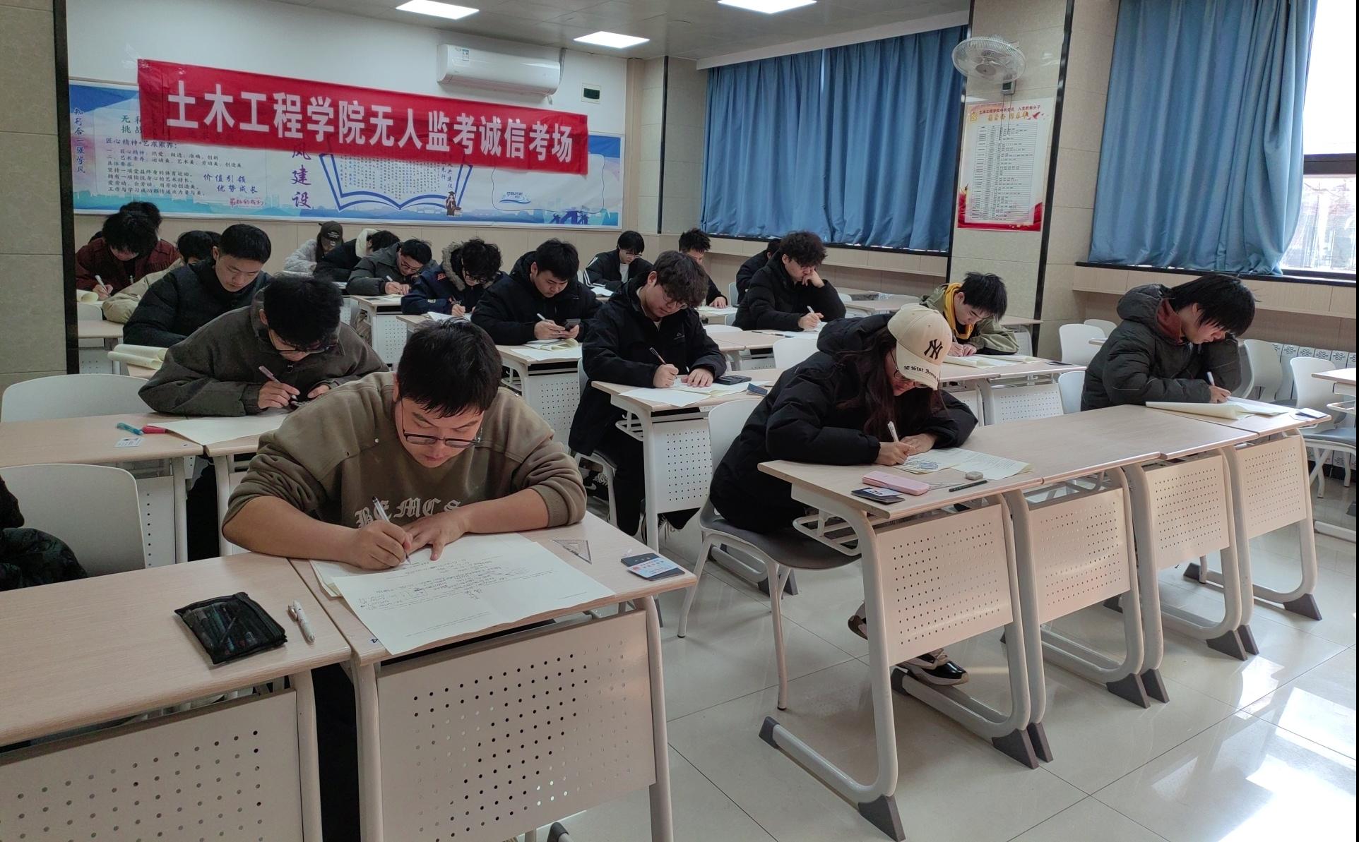 土木工程学院在2025-2026学年第一学期期末考试中创新设置了“无人监考”考场试点,以2023级智能建造专业《土力学与基础工程》课程为改革试点,提前制定了《土木工程学院“无人监考诚信考场”实施方案》,班主任和辅导员老师提前召开了诚信考试主题班会,带领学生系统学习了《西京学院学生手册》和《西京学院考试考场规则》,并从考试基本要求、注意事项、违纪处理等多个方面进行了详细讲解,筑牢学生诚信意识。学生党员、干部带头签署《诚信考试承诺书》,鼓励同学们在考场自觉接受监督。考试过程中,院领导、教学秘书通过监控系统实时查看考场考试情况,巡考组也加大了巡查力度,“无人监考诚信考试”考场全体学生安静答题、诚信考试,考场秩序井然,无作弊和违纪情况发生。土木工程学院教学副院长张海龙指出,未来三年内计划将“无人监考”逐步推广,扩大课程、人员覆盖面,从“试点”到“常态”,构建诚信教育良好生态。