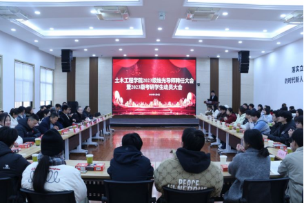 1月4日下午,土木工程学院于第二会议室召开烛光导师聘任大会暨2023级考研学生动员大会。学院领导班子成员、受聘烛光导师、2023级考研学生及相关辅导员出席会议。会议由学科建设办公室主任何世丹主持。
