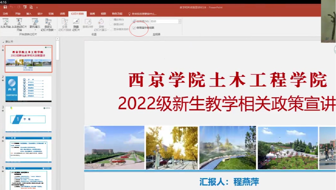 教务科科长程燕萍、教研科科长何世丹、实验中心主任王利东等科室负责人也为全体新生就教学、学籍管理、竞赛、考研和实验条件等方面进行解读。