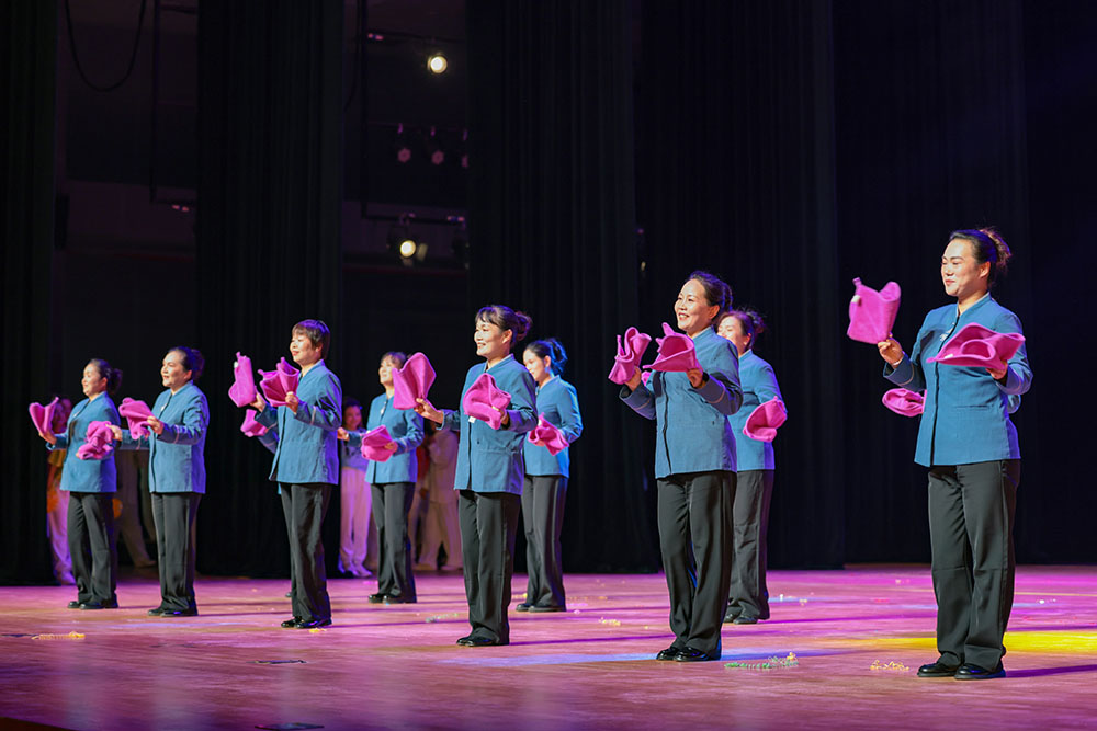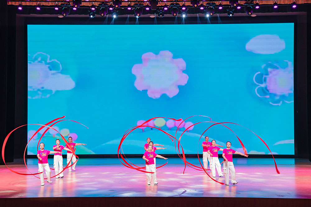 比赛在家属委员会演奏的《今天是你的生日》中开始。十支由各分工会组织的代表队参加比赛,部分节目为多个分工会联合表演。各参赛队精神饱满,动作整齐,编排多样,展现教职工团结协作、昂扬向上的精神风貌,赢得了现场观众的阵阵掌声。