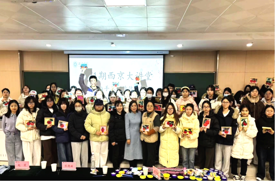 西京网讯:12月9日,西京大讲堂第71期活动在图书馆103报告厅举行。本次活动主题为“匠心传韵·非遗焕新”,聚焦西安非遗项目棉絮画,为参与者提供了手工制作体验。